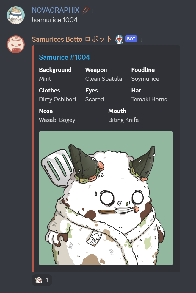 {% hint style="info" %} <mark style="color:blue;">**!samurice id**</mark>    *(Example: !samurice 1004)*